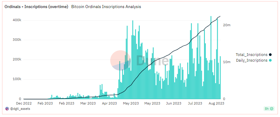 [Over $56 million](https://dune.com/dgtl_assets/bitcoin-ordinals-analysis) in fees have been generated by Ordinals to date.&#x20;